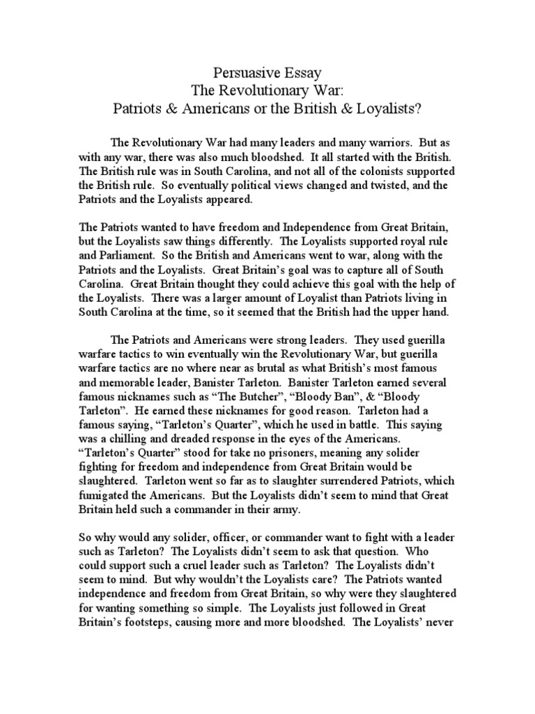 The American Revolution was a colonial revolt that took place as a result of tensions that built up over many years between the British crown and unhappy American colonists who were affected. The American colonists eventually won the war that took place between and , and ultimately gained their independence from Great Britain. This [ ] · 10 Lines on American Revolution Essay in English 1. The War of the American Revolution occurred from to 2. Seven Years’ War that happened from to brought new colonial territories under the British crown. 3. Continental congress denounced maintenance of the British army in the Estimated Reading Time: 7 mins A historic special operation that lays the foundation of growing nature of asymmetric warfare on a global scale would be the American Revolution. In this essay I will discuss two particular battles, Bunker Hill and the Battle of Saratoga. Throughout the revolutionary war the American